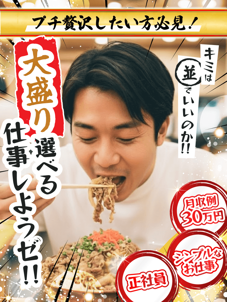| 給与 | 【月収例】 25万〜30万円 残業・深夜・休日手当別途支給 ※配属先・勤務形態によって異なります。 |